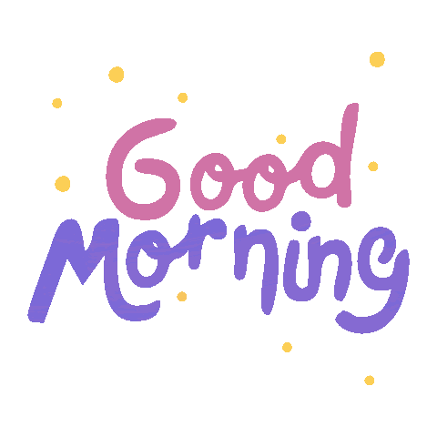 Animated sticker featuring the words 'Good Morning' in vibrant teal and orange, with playful floating dots.
