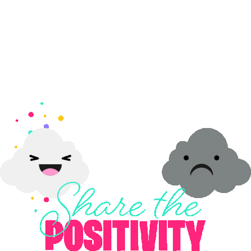 Mcdstudio's animated sticker featuring a vibrant rainbow, a happy cloud, and a sad cloud, encouraging to 'Share the Positivity'.