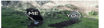A person digs a grave next to a tombstone marked 'YOU', with 'ME' visible, creating a dark humor or meme sticker.