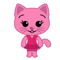 Me Li, the pink cat from Plim Plim, smiles happily in a pink dress, perfect for Nesho and Tuni fans.