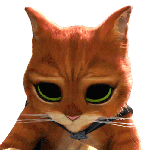 Puss In Boots from Puss In Boots The Last Wish with his iconic pleading eyes, accompanied by the text 'ME', perfect for expressing a relatable moment.