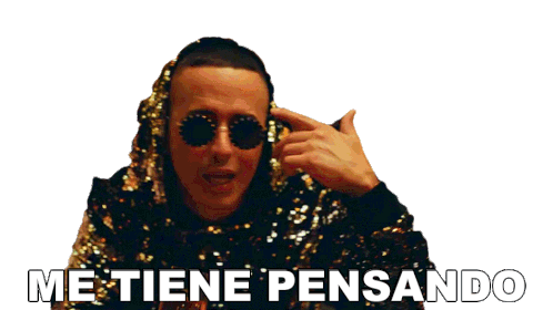 Yandel, wearing sunglasses and a sequined hoodie, points to his head, conveying deep thought with the caption 'Me Tiene Pensando'.