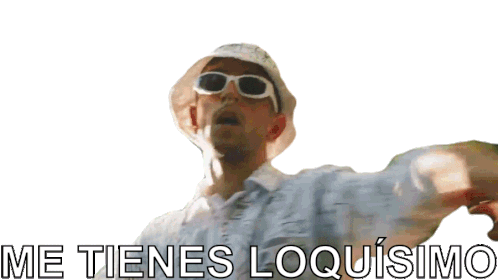 Bejo, with sunglasses and hat, arms outstretched, expresses "Me Tienes Loquísimo" (You drive me crazy).