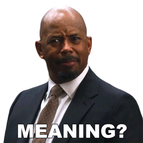 Julius Cain, played by Michael Boatman, looks confused and asks 'Meaning?' in this sticker from The Good Fight.