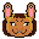 Animated pixel art sticker of a rabbit character, Mechamedekley, with a mischievous expression, perfect for gossip.