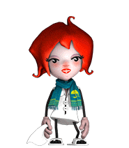 Medatixx Roxy, with red hair and a scarf, sneezes while holding a tissue, indicating a cold.