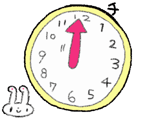 Mediusachan rabbit character with a hand-drawn clock showing 4:20, accompanied by 'Chi Chi Chi' sound effect.