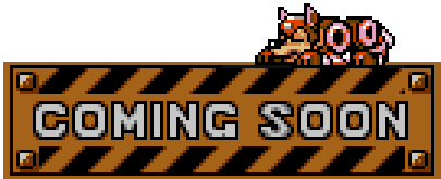 A pixel art sticker featuring Mega Man's loyal companion Rush sleeping atop a 'COMING SOON' banner.