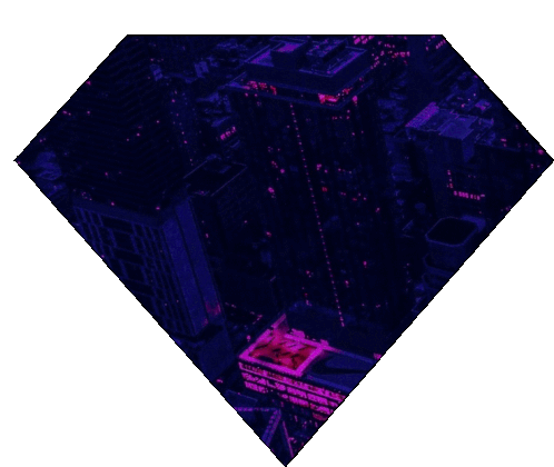 a diamond shaped image of a city at night with purple lights