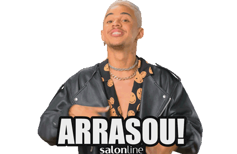 Thiago from Salonline celebrates with an "Arrasou!" gesture, expressing excitement and approval for a great job.