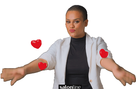 Marcela Maita shows love with heart hands, surrounded by animated red hearts, perfect for expressing affection.