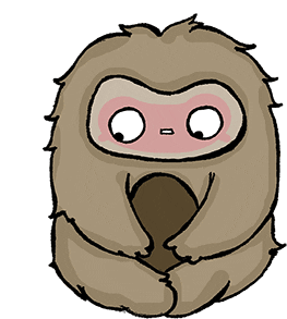 A cute, fluffy, sloth-like creature with a "meh" expression, looking upwards. Created by Florens Debora.