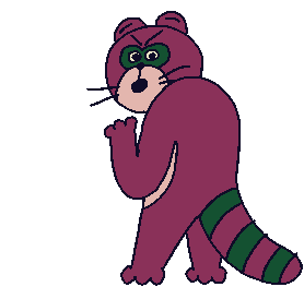 Mekamee Raccoon makes a "shhh" gesture, looking over its shoulder with a secretive and mischievous expression.