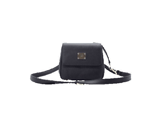 The elegant Melina Bucher Trudy Bag, a stylish black crossbody with a metallic MB logo, perfect for luxury fashion.