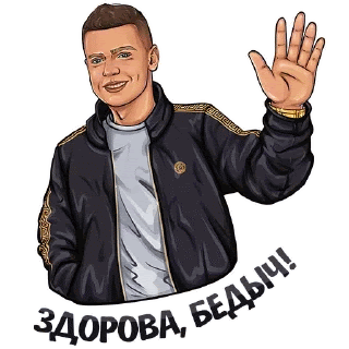 a cartoon of a man in a black jacket waving his hand in a foreign language .
