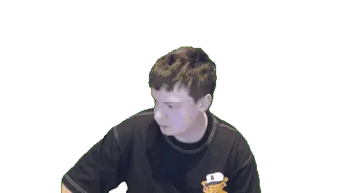 a man wearing a black nike shirt is looking at something
