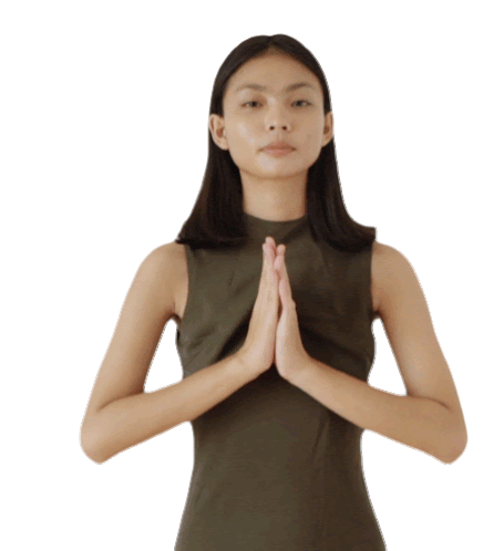A woman from Jakarta Fashion Week performs a respectful greeting gesture, pressing her hands together and bowing slightly.