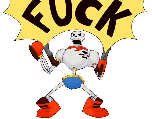 a cartoon drawing of a skeleton holding up a sign that says fuck