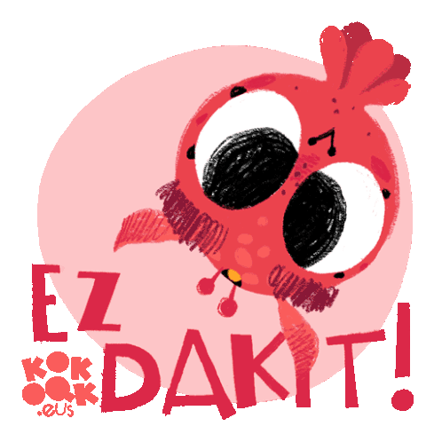 A cute red creature sticker saying 'Ez Dakit!' (I don't know!) with fire. From Kokoak .eus, perfect for meme reactions.