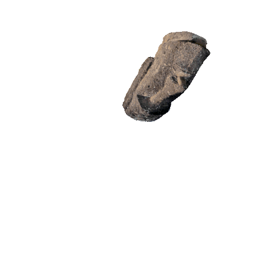 A pixel art Moai statue falls through a vibrant portal, landing on a lush island in the Memeland metaverse.