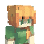 A pixel art Minecraft character, resembling Alex, playfully removes and puts back a paper bag over her head.
