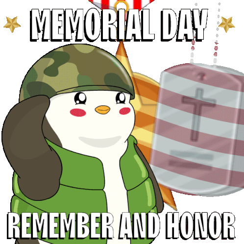 a poster for memorial day with a penguin in a military uniform saluting