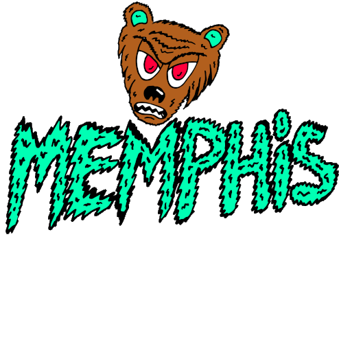 An animated fierce brown bear head with red eyes and green ears, above the word MEMPHIS, representing the Memphis Grizzlies.