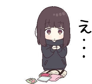 Menhera-chan looks surprised as items spill from her bag with a 'zazaa' sound, expressing 'eh?'.