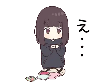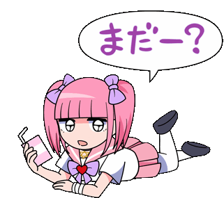 Menhera Chan (Momoka Sakurai) lies down, sipping a drink, then asks 'Still?' with a cute, impatient expression.