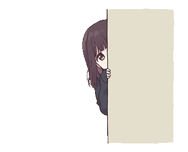 Menhera-chan, the anime girl, shyly peeks from behind a wall, her dark hair and expressive eyes visible.