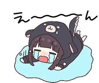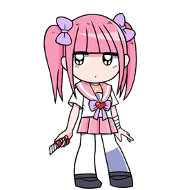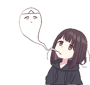 Anime girl in a hoodie with short brown hair, looking up as she spits out a small ghost-like figure.