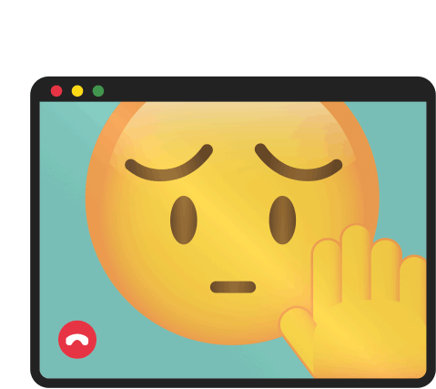 Sad emoji on a video call screen, expressing feelings of isolation and mental health struggles, with a hand pushing away.