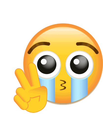 Animated crying emoji with a peace sign gesture, symbolizing resilience and mental health awareness despite sadness.