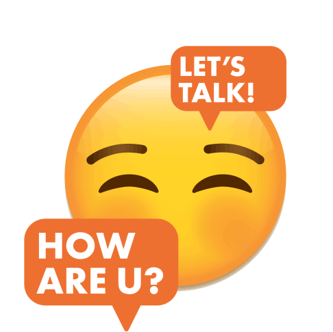 A supportive emoji encouraging conversation about feelings with 'Let's Talk!' and 'How Are U?' messages.