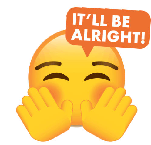 A comforting emoji with hands covering its face, saying 'It'll Be Alright!', perfect for mental health support.
