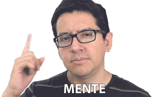 Aldo, from El Robot De Platon, points to his temple, emphasizing 'Mente' (Mind) in this expressive sticker.