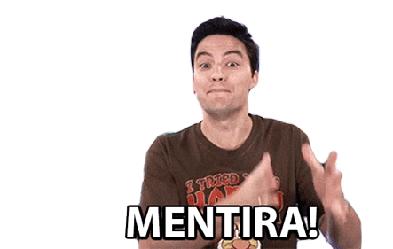Felipe Neto emphatically exclaims 'Mentira!' (Lie!) with expressive hand gestures, reacting to something untrue.