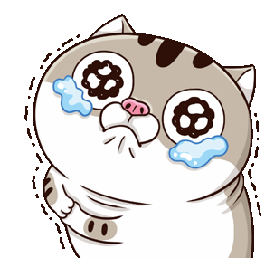 Meobeo, the cute cat character, is shown crying intensely with large tears and a distressed expression.