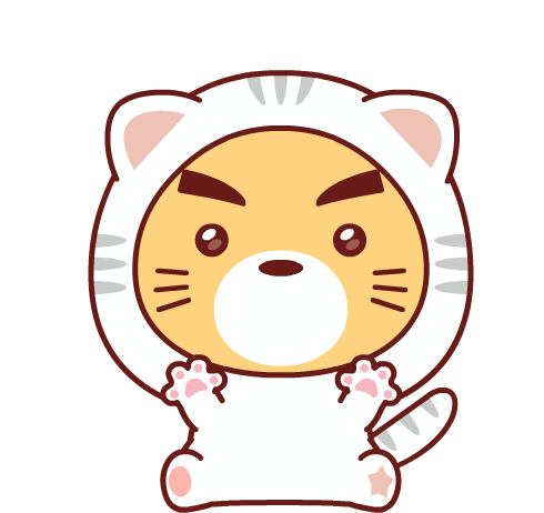 An adorable cartoon cat character in a white costume winks playfully, with cute paws and a 'meow' expression.