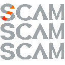 Animated sticker featuring the word 'SCAM' repeated three times with a dynamic orange and red graphic, referencing 'Merge Z Scam'.