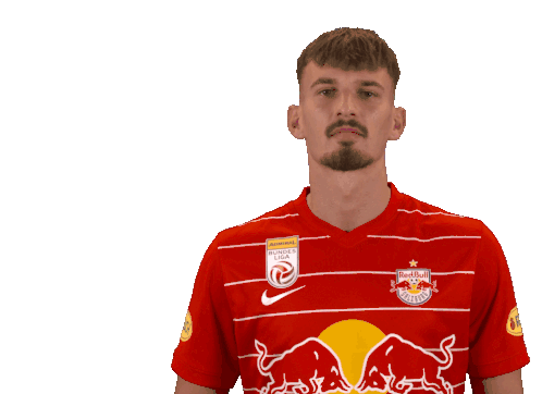 Mergim Berisha, the Red Bull Salzburg player, makes a 'shush' gesture, signaling for silence with a finger to his lips.
