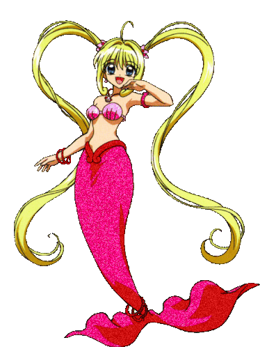 Animated sticker of Lucia Nanami from Mermaid Melody Pichi Pichi Pitch, sparkling with glitter and her iconic red tail.