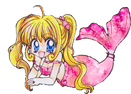 Lucia Nanami from Mermaid Melody Pichi Pichi Pitch, depicted as a mermaid with blonde hair and a vibrant pink tail, relaxing.