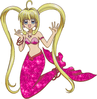 Lucia Nanami from Mermaid Melody Pichi Pichi Pitch gracefully swims with her blue tail and teal hair.