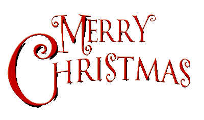a merry christmas logo with a red swirl