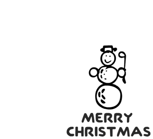 A cheerful, stick-figure snowman playing golf, wishing Merry Christmas with a happy smile.