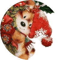 A cute squirrel wearing a festive Santa hat and scarf, surrounded by Christmas greenery, wishing a Merry Christmas.
