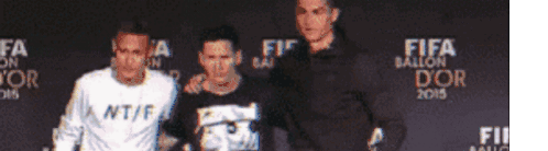 three soccer players are posing for a picture in front of a wall that says fifa ballon d' or