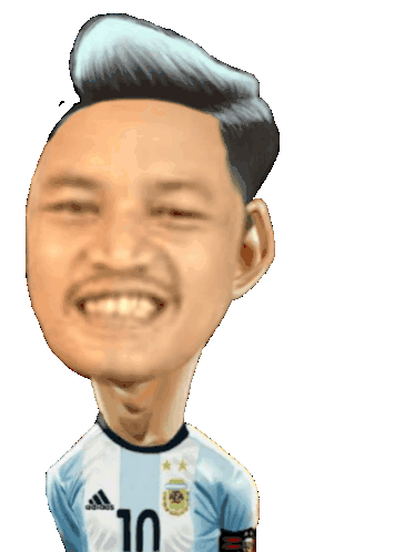 A funny caricature of Lionel Messi in an Argentina football jersey, smiling with a 'GOO' text beside him.