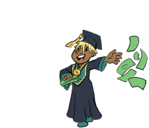 Metromarrs celebrates graduation, making it rain with money. A joyful sticker for success and prosperity.